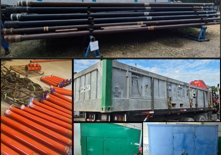 Tubería de perforacíon, tubería y accesorios de unión de golpe, canastillas, generadores de energía, etc..